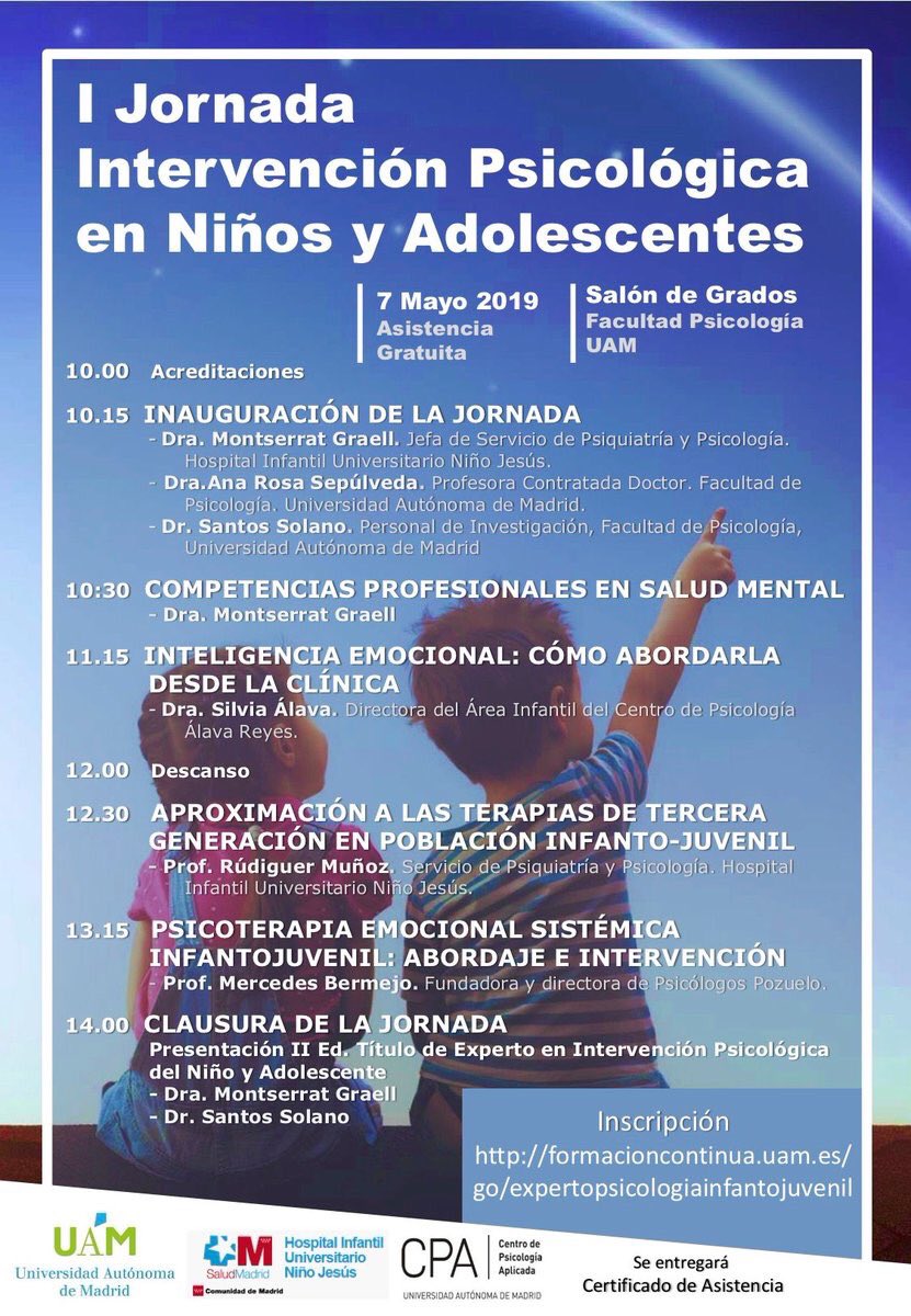 Será el 7 Mayo 2019 en el Salón de Grados de la Facultad de Psicología de la UAM y la Asistencia es Gratuita, previa inscripción