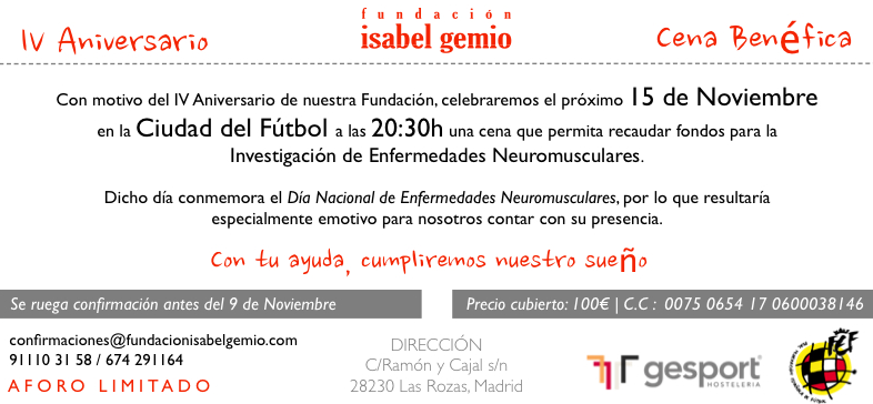 Cena benéfica IV aniversario Fundación Isabel Gemio: 15 de Noviembre
