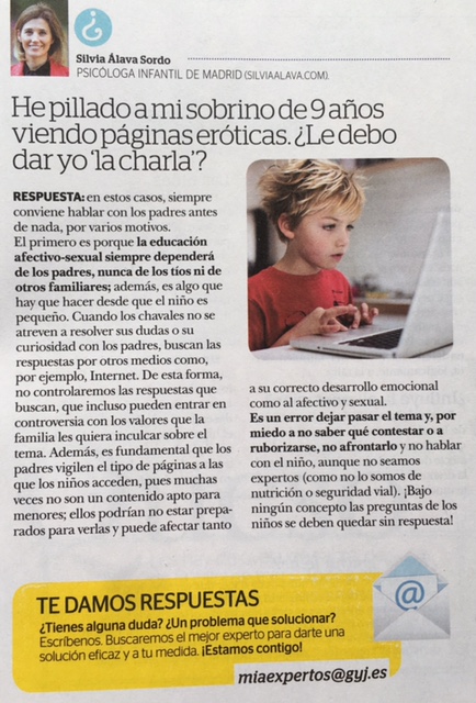Colaboración en el consultorio de la revista Mía: duda sobre educación sexual para niños