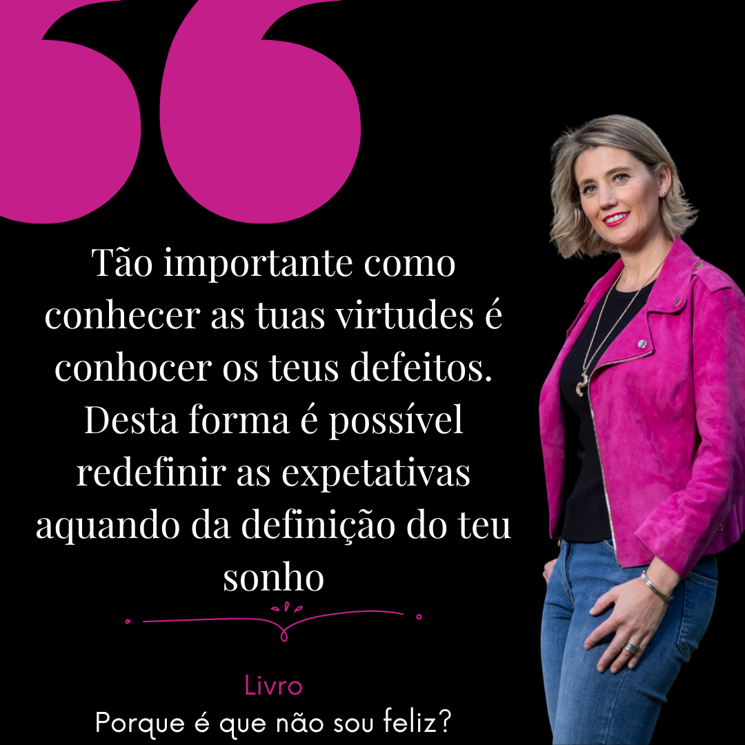 Tão importante como conhecer as tuas virtudes é conhocer os teus defeitos. Desta forma é possível redefinir as expetativas aquando da definição do teu sonho