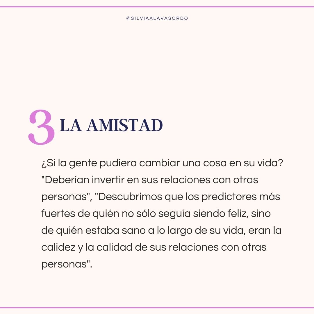 ¿Si la gente pudiera cambiar una cosa en su vida? «Deberían invertir en sus relaciones con otras personas», «Descubrimos que los predictores más fuertes de quién no sólo seguía siendo feliz, sino de quién estaba sano a lo largo de su vida, eran la calidez y la calidad de sus relaciones con otras personas».