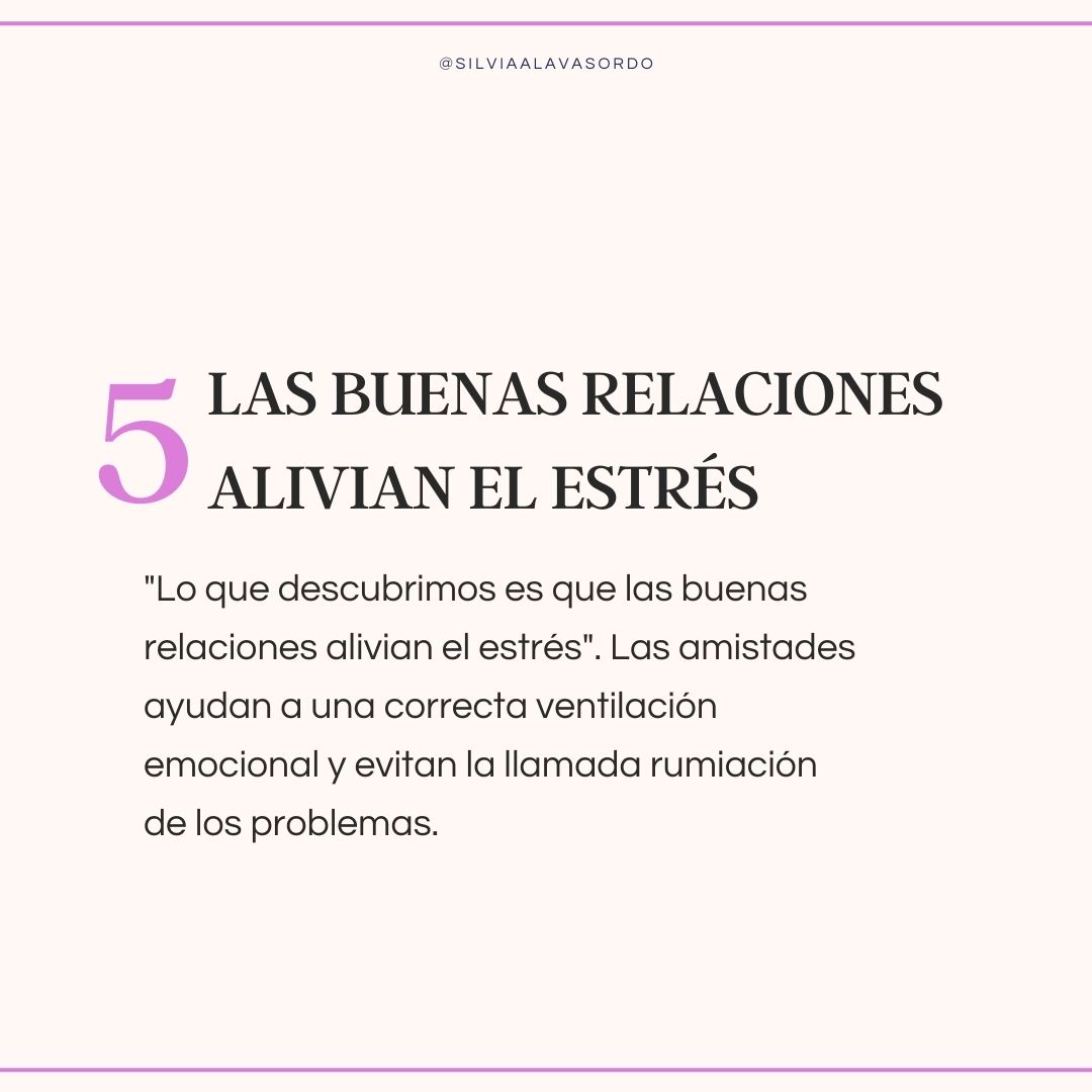 «Lo que descubrimos es que las buenas relaciones alivian el estrés». Las amistades ayudan a una correcta ventilación emocional y evitan la llamada rumiación de los problemas.